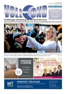 Ausgabe 6/2025 Perchtenlauf in Mondsee Rund 150 Perchten liefen am ersten Adventsonntag durch das Mondseer Ortszentrum. Mit dabei waren auch der Nikolaus und seine Engerl (Bild). Die Bildreportage dazu finden Sie auf den Seiten 2 und 3. Bild: Albert Moser
