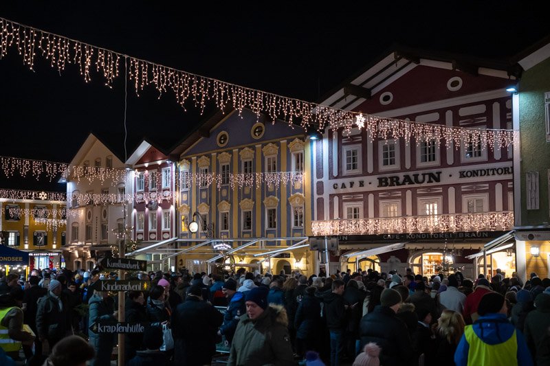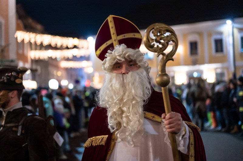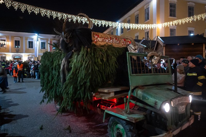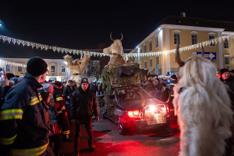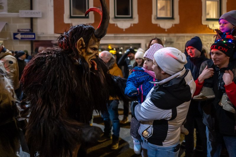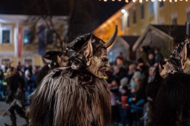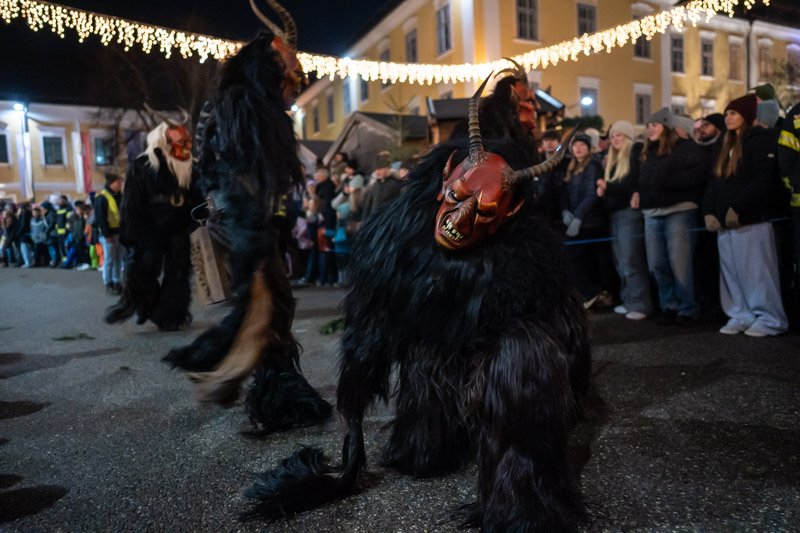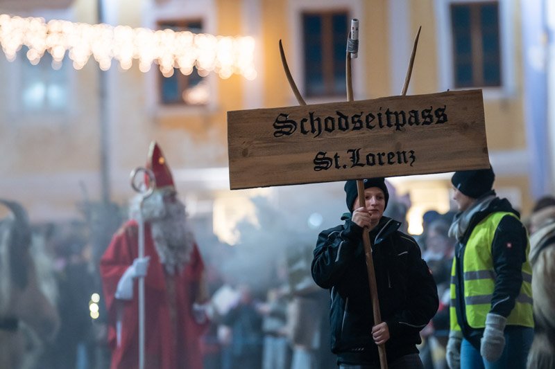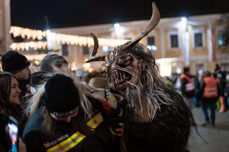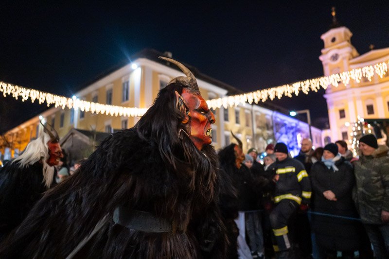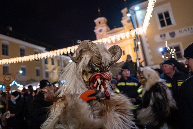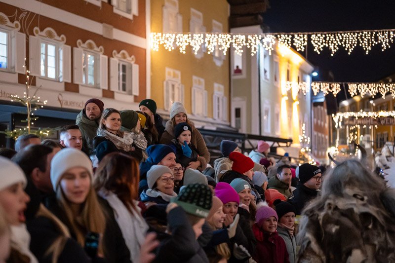 Passen aus dem MondSeeLand und der Umgebung mit insgesamt ca. 150 Perchten versammeln sich im Ortszentrum und zeigen ihre meist handgeschnitzten Perchtenmasken.