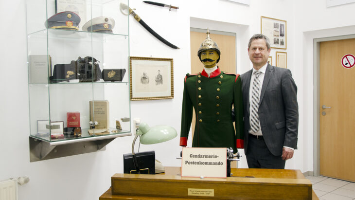 Im Bild oben Helmut Naderer in dem von im gegründeten Gendarmerie-Museum am Polizeiposten in Bergheim. Bild: Rule