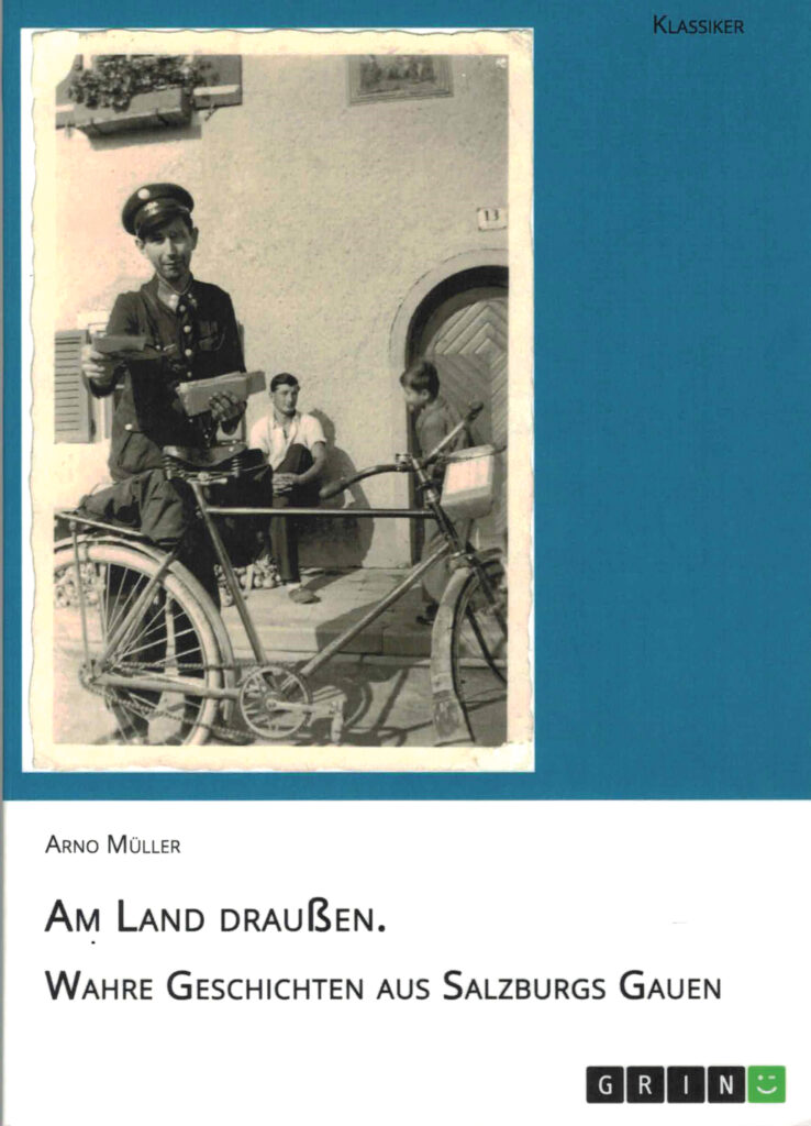 Wieso mir das jetzt einfällt? Weil mir vor einiger Zeit Arno Müller sein Buch zugeschickt hat. Es ist zwar schon vor fünf Jahren erschienen, aber die Geschichten darin sind zeitlos und handeln von Menschen in Salzburg. Der radelnde Briefträger in Faistenau kommt da ebenso vor, wie die Bauerndirn Cilli aus Hof, die es 1956 nach Island verschlagen hat. Wie es 1867 zum Wildererdrama am Ochsenberg bei Ebenau kam hat Arno Müller penibel recherchiert und wieso zur Nazi-Zeit eine ganze Wallfahrergruppe vom Postenkommandant in Hof verhaftet wurde, wird in dem Buch auch recht launig erzählt.