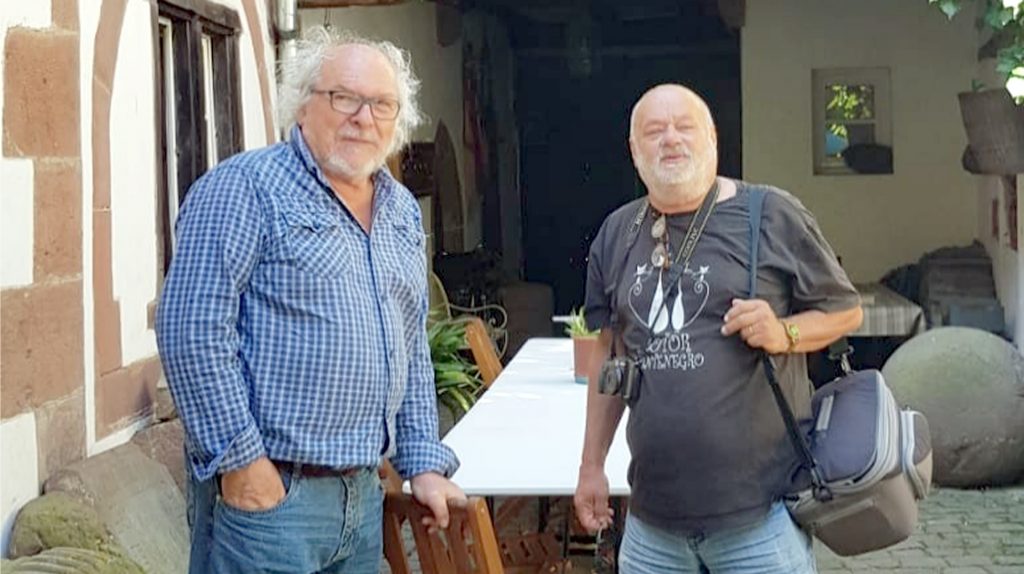 Serge (links) erzählte mir im Innenhof seiner über 600 Jahre alten Hauses in Wissemborurg die Geschichte des legendären „Bumper Nickeln“. Bilder: Rule und Bernadette Lenzenweger.