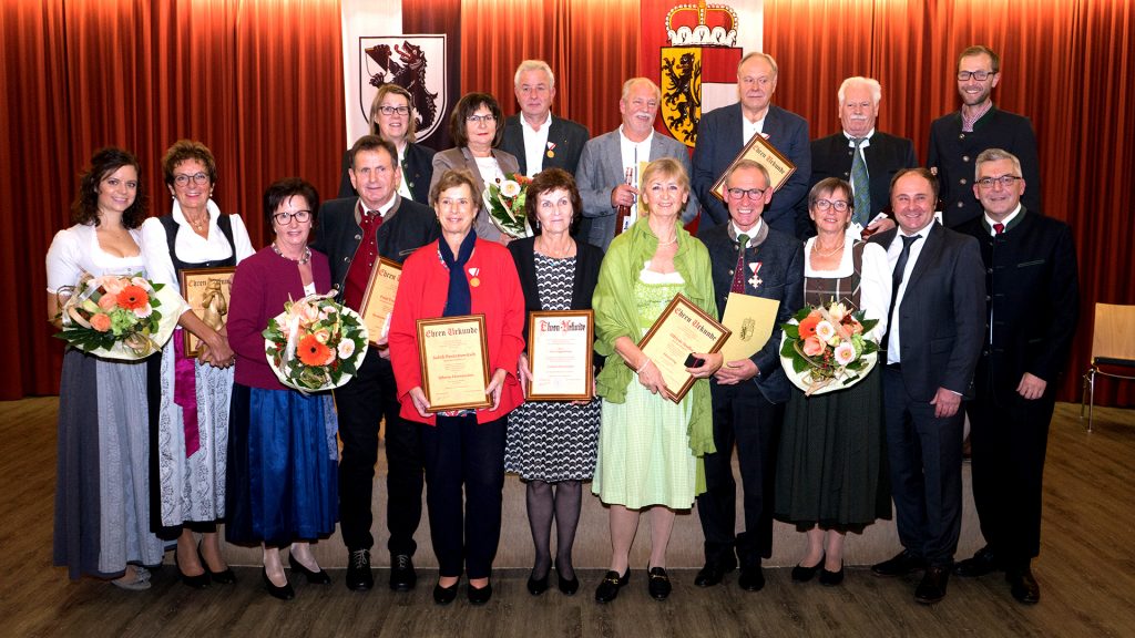 Von neun geehrten Persönlichkeiten wurden zweimal der Ehrenring der Gemeinde Berndorf und einmal das große Ehrenkreuz des Landes Salzburg als höchste Auszeichnung verliehen.
